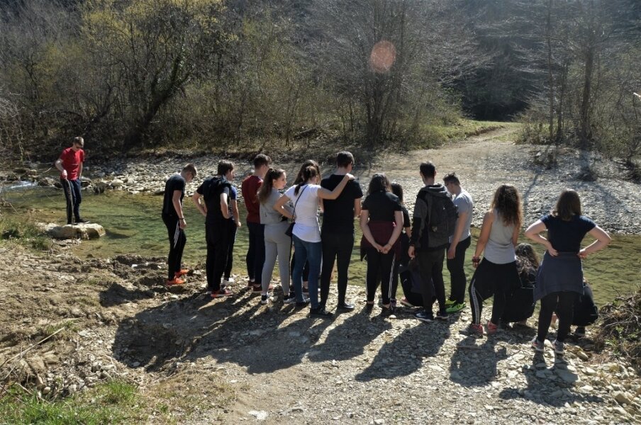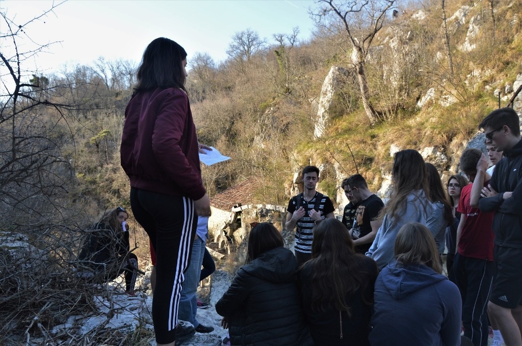 Nakon razgledavanja crkvica u Roču i nogometne utakmice, na red stiže osvježenje u Kotlima. Uz kristalno čistu vodu iz rijeke Mirne učenici su se osvježili i iskušali svoje penjačke vještine. Kad su ponovno sakupili energiju, posjetili su najveću skupinu spomenika posvećenih glagoljici, a to je, naravno, Aleja glagoljaša.
