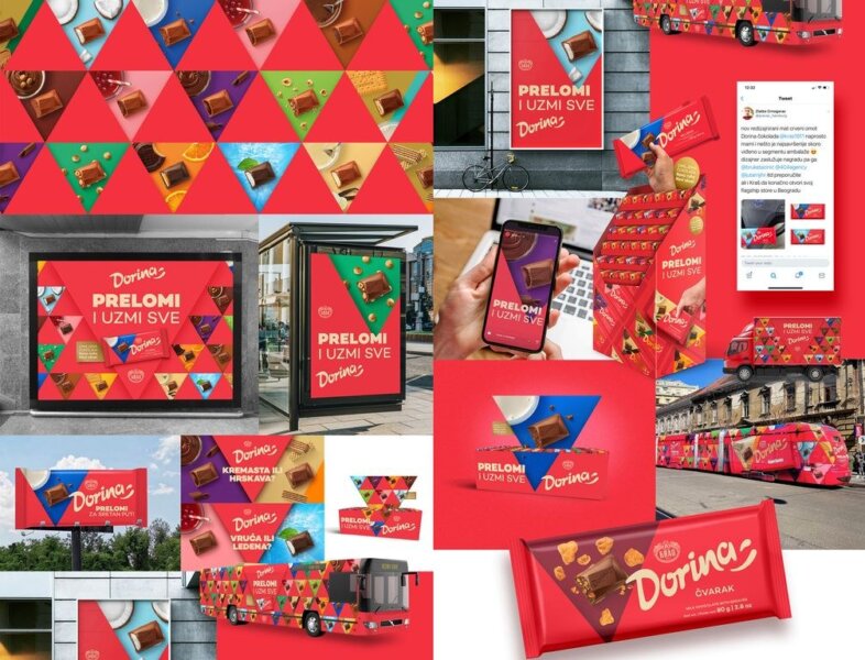 Prilikom obilježavanja 110 godina Kraša, čokoladi Dorina udahnut je novi i suvremeniji izgled s ciljem približavanja mlađoj ciljnoj skupini te isticanja širine izbora okusa kao komparativne prednosti. Otkada je prvi put predstavljena 1996 g., Dorina je sinonim za kvalitetu kojoj se vjeruje, no kada je riječ o dizajnu omota, u proteklih se 25 godina više puta mijenjao te nije uspostavljena dosljednost samog brenda kroz ambalažu. Stoga je Dorini u 2022. udahnut "iconic” dizajn kako bi ju se učinilo nadaleko prepoznatljivom. Karakteristična crvena boja brenda je rederfinirana i odabrana je suvremenija crvena nijansa, materijal pakiranja je osuvremenjen, a color code je standardiziran kroz sva pakiranja radi bolje vidljivosti na polici. Prepoznatljiv logotip minimalno je prerađen i moderniziran te je potez čokoladom preoblikovan u poznatu "smile” ikonicu, koja postaje zaštitni znak nove Dorine te komunicira emocije koju dostižemo konzumacijom, a to su osmjeh i zadovoljstvo. Kod prikaza okusa korišteni su grafički elementi s prvih Kraševih čokolada iz ranih 80-ih (trokut) kao poveznica s tradicijom, a jasnom distinkcijom dat je naglasak na širinu okusa u ponudi. Novo pakiranje popratila je i prigodna kampanja koja naglašava novi identitet čokolada i širinu izbora.