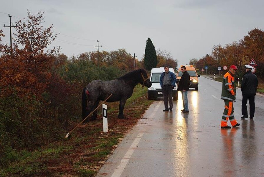 Jutros u 7.30 sati kod Mihatovići na cesti Kukci-Višnjan došlo je do nesreće u kojoj je vozačica Renaulta naletjela na dva konja pobjegla iz obližnje štale.
