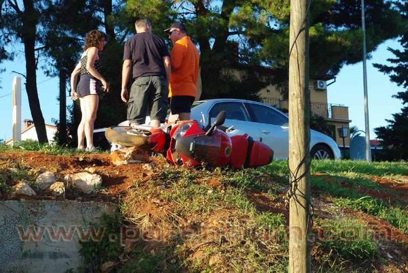 Lakše ozljede zadobili su motociklist i njegova suvozačica na motociklu Yamaha R6 riječkih tablica u prometnoj nesreći koja se danas nešto nakon 19 sati dogodila u Vukovarskoj ulici u Poreču, u blizini sportske dvorane na Žatiki.
