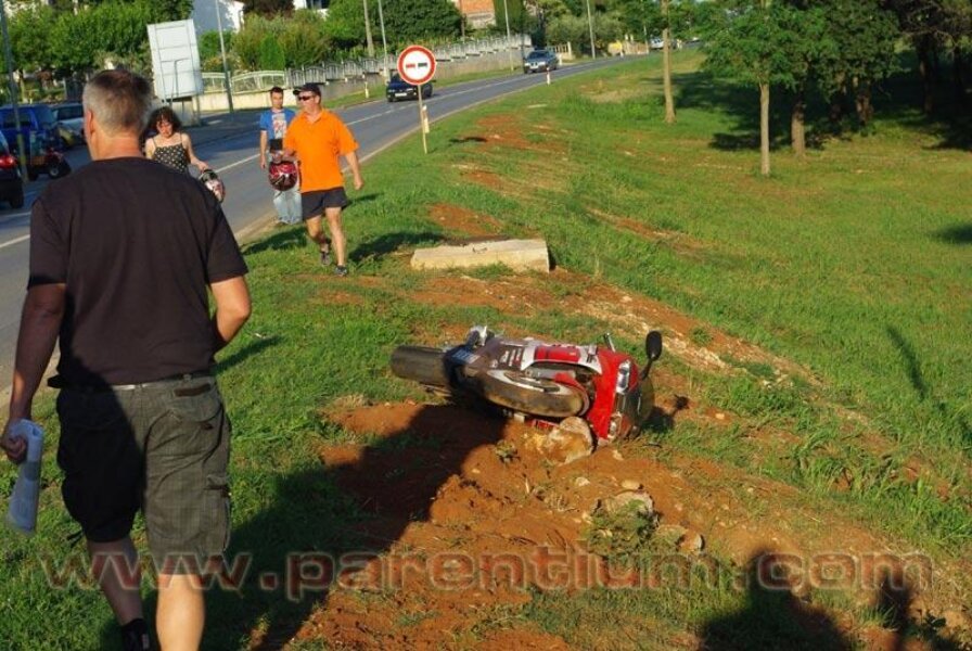 Motociklista je pokušao izbjeći sudar, ali u tome nije uspio. Nakon udarca u prednji desni dio vozila, motocikl je sletio sa ceste i završio na zemljanom nasipu neposredno ispod nje. Neslužbeno doznajemo da su vozač motocikla i suvozačica zadobili lakše ozljede, a vozilo HMP ih je sa mjesta nesreće odvezlo u porečki dom zdravlja.