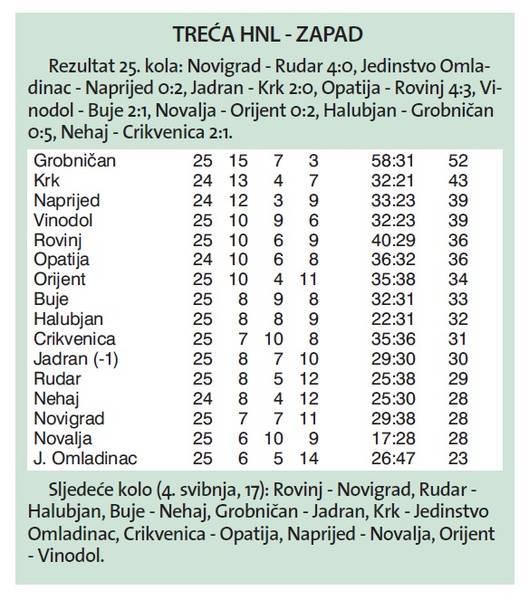 U 33. minuti velika prigoda za Krk. Poropat je protutnjio desnom stranom, centrirao za Grpca, ali njegov udarac sa pet metara brani Andrej Gržentić.