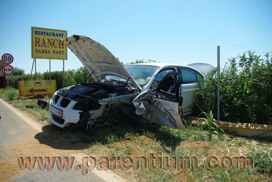 Nakon strahovitog sudara dvaju vozila, BMW je probio obližnji vrtni zid i tu se zaustavio, dok je VW bez jednog kotača prešao na lijevu stranu ceste i zaustavio se na zelenoj površini tridesetak metara od točke sudara.