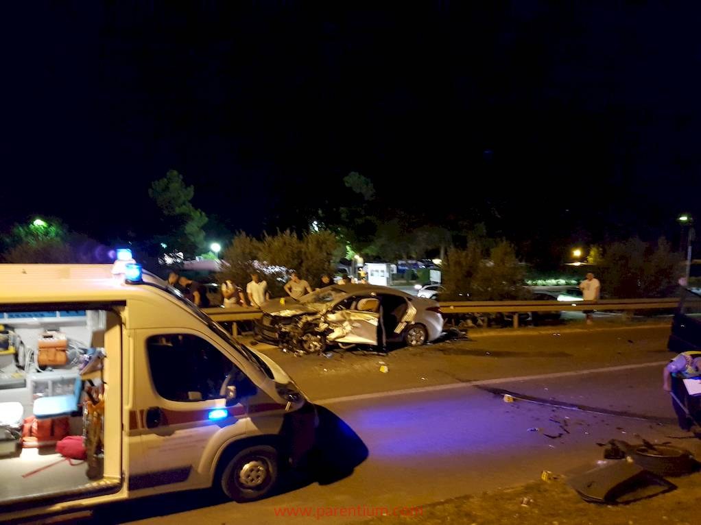 Večeras se u Vrsaru dogodila teška prometna nesreća sa više ozlijeđenih osoba i dva u potpunosti uništena automobila. Neslužbeno doznajemo da je vozač Mercedesa ML austrijskih oznaka, krećući se iz smjera Vrsara prema Funtani, u oštrom desnom zavoju iznad autokampa i groblja prešao na lijevu stranu kolnika i sudario se sa osobnim automobilom Hyundai elantra pulskih registarskih oznaka u kojem su se navodno nalazile četiri mlađe osobe.
