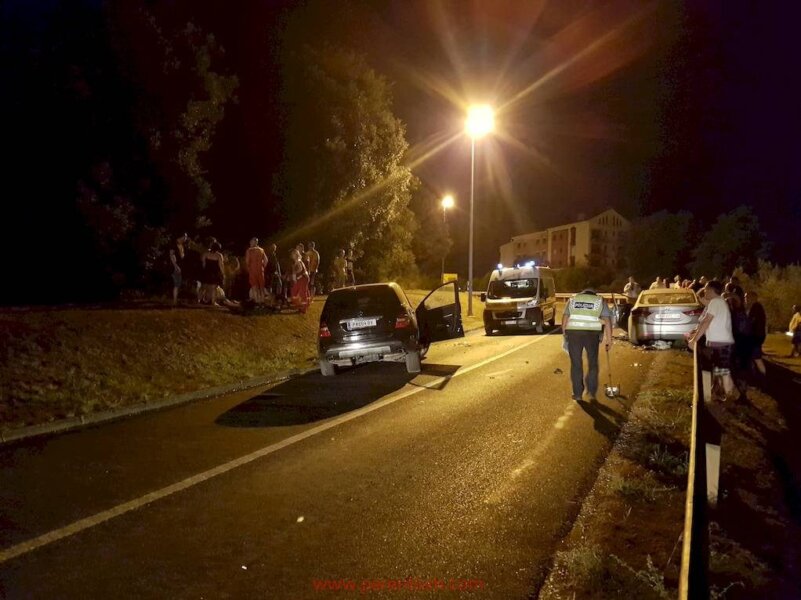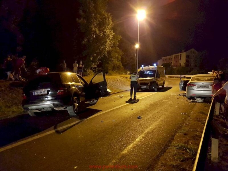 Mercedes se od siline udarca okrenuo oko svoje osi, dok se Hyundai zaustavio udarivši u metalnu ogradu kraj ceste.