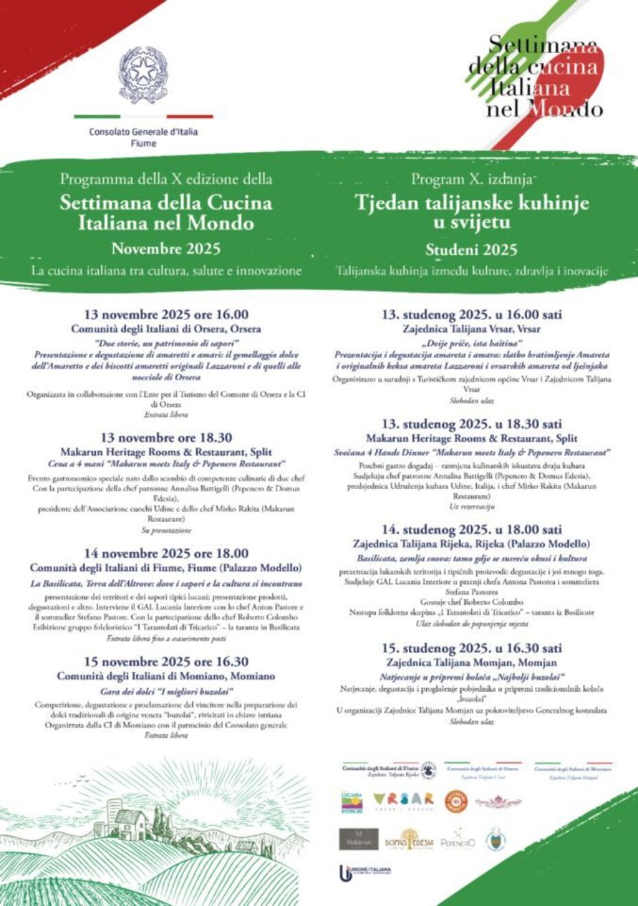Ovog studenog Istra, kroz mirise amareta i buzolaia, ponovno postaje sugestivno mjesto susreta Italije i Hrvatske za stolom. „Tjedan talijanske kuhinje u svijetu“ već cijelo desetljeće uspješno promiče talijansku gastronomiju kroz druženja koja povezuju kulinarske doživljaje, kulturu, zdravlje i inovacije. Deseto izdanje ove međunarodne manifestacije odvija se u više hrvatskih gradova, a istarski dio programa donosi dva slasna događanja otvorena za javnost - danas (četvrtak, 13. studenog) u