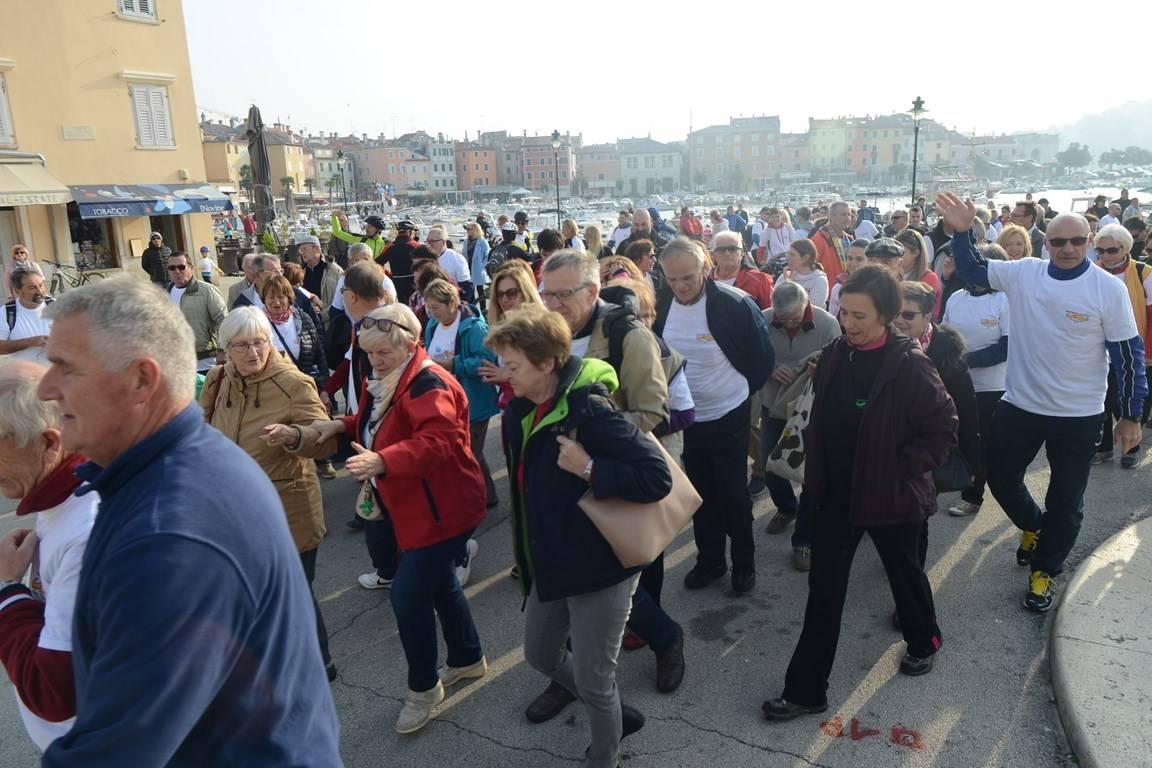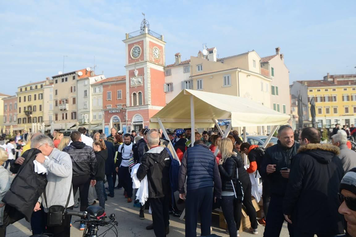 Sunčana i temperaturno ugodna subota na otvorene prostore Rovinja izmamila je veliki broj šetača. Ipak, najživlje je bilo na Trgu maršala Tita, na kojem su se oko deset sati počeli sakupljati sudionici sportsko-rekreativnog događanja organiziranog pod dirigentskom palicom Udruge "Martišnjak z muštaci". Sportsko je rekreativni događaj podrazumijevao razgibavanje u tri kategorije - hodanju, trčanju i bicikliranju i sve to u znak podrške akciji koju Udruga potiče, a tiče se muškog zdravlja.