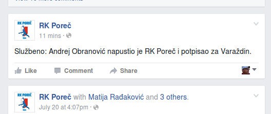RK Poreč je na svojim web stranicama naknadno objavio da je Andrej Obranović potpisao za Varaždin.