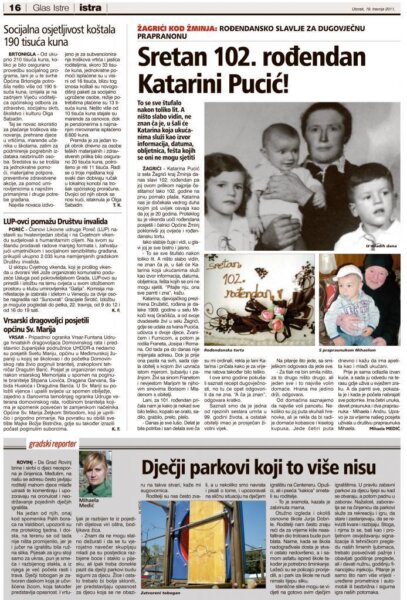 Prije samo deset dana, 19. travnja, u krugu obitelji proslavila je 108. rođendan što ju je definitivno svrstalo u najstarijeg stanovnika Hrvatske. Iako su novinari Glasa Istre obilazili njezine rođendanske proslave u posljednjih šest godina, na zadnjem nismo bili. Posljednji ispraćaj zakazan je danas u 15 sati na mjesnom groblju u Žminju.