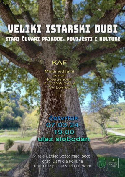 Kroz projekt Instituta za poljoprivredu i turizam Poreč, koji financira Zaklada Adris, tijekom 2024. godine želimo zaštiti bar neka od naših vrijednih stabala u Istri. Cilj projekta je odrediti starost i zdravstveno stanje pet odabranih stabala te educirati javnost o važnosti ovih divova za prirodu i čovjeka.