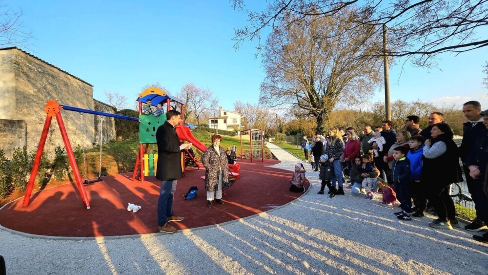 Na otvorenju su sudjelovali mještani, djeca i predstavnici Općine, a igralište je blagoslovio župnik Leonardo Krakan.
