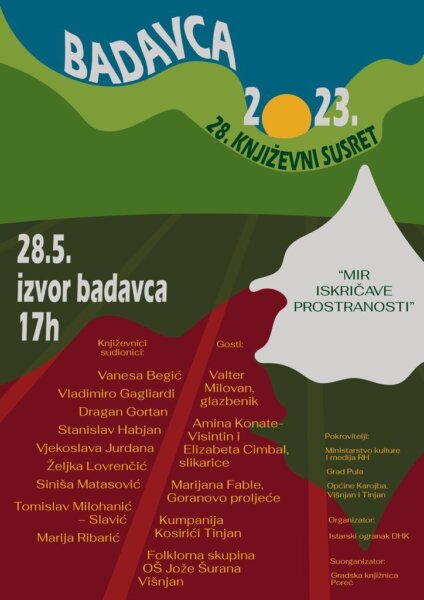 U nedjelju, 28. svibnja u 17 sati na izvoru žive vode Badavca kraj Rapavela bit će održan 28. književni susret Badavca pod geslom "Mir iskričave prostranosti".