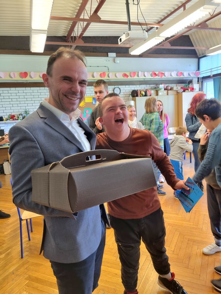 Nošenju šarenih rasparenih čarapa pridružili su se i porečki gradonačelnik Loris Peršurić sa suradnicama i pročelnicom Upravnog odjela za društvene djelatnosti Tihanom Mikulčić te koordinatoricom Zdravog grada i predsjednicom Društva invalida Poreč Natašom Basanić Čuš. Gradonačelnik i suradnice ovom su prilikom polaznike Posebnog odjela počastili tortom i poklonom Grada - sportskim rekvizitima i opremom koji će im poslužiti u njihovim aktivnostima u teretani na otvorenom, gdje od početka školske godine dva puta tjedno polaze treninge pod stručnim vođenjem kineziologa i fizioterapeuta.