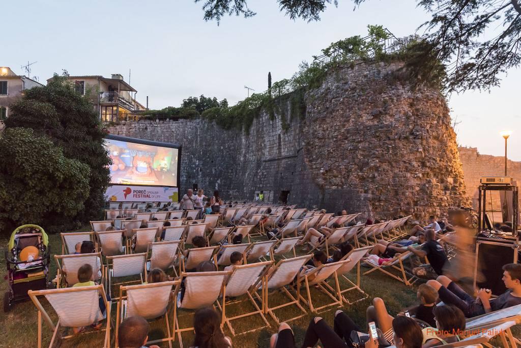 Zahvaljujući Poreč Open Air festivalu, ljubitelji filma imaju priliku svakodnevno uživati u besplatnim filmskim projekcijama na otvorenom – u vrtu Ville Polesini ili na travnjaku na početku Lungomare šetnice. Filmske projekcije počinju čim se smrači, oko 21 sat, a većina posjetitelja zbog velikog interesa svoje mjesto zauzme i znatno ranije kako bi prije filmske projekcije uživali u zalasku sunca.