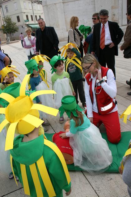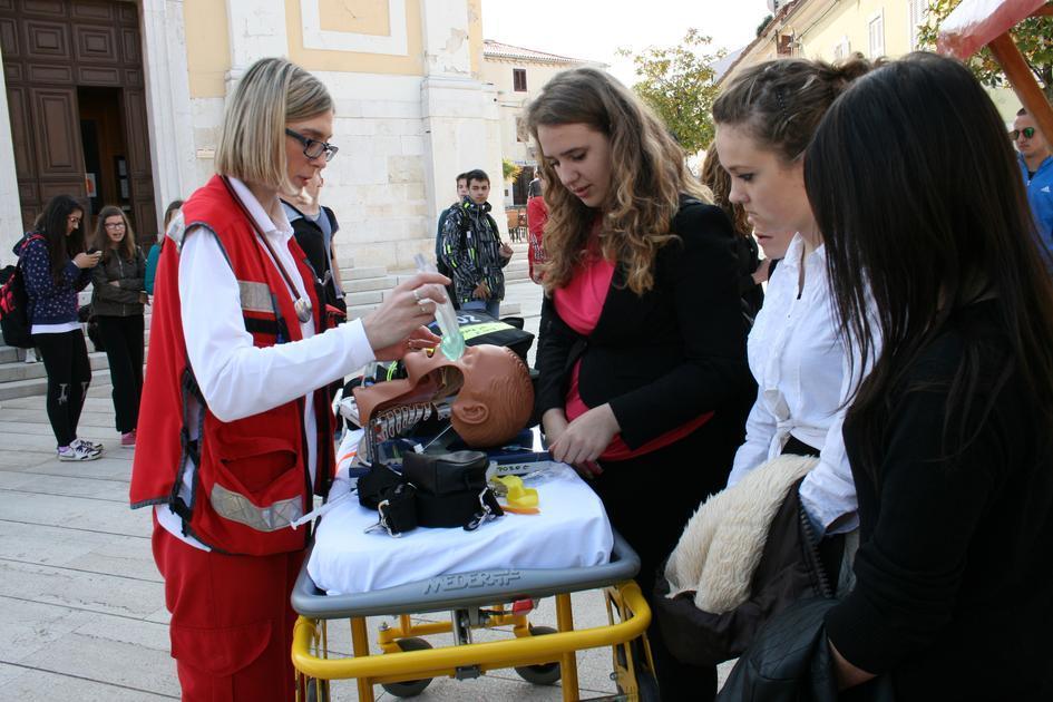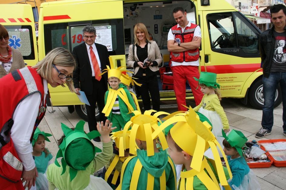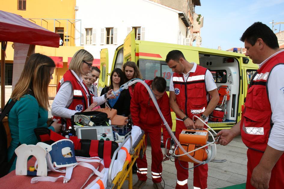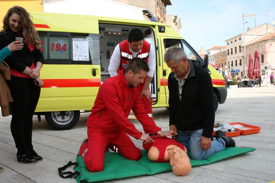 Vozilo hitne pomoći i porečka ekipa vođena liječnicom Martinom Rojnić na Trgu slobode boravila je od 9 do 11 sati. Simpatičan i vedar tim porečke HMP plijenio je pažnju te je neprestano bio okružen mnoštvom zainteresiranih građana od najmlađih, preko srednjoškolaca do odraslih osoba. Demonstrirali su građanima načine oživljavanja, postavljanje unesrećenog u bočni položaj, načine imobilizacije i davali korisne savjete o metodama i tehnikama pomoći unesrećenima u našem svakodnevnom neposrednom okruženju, a koje mogu uvelike povećati šansu za spašavanje života do dolaska hitne pomoći. Štoviše, stručni tim porečke HMP uključivao je građane u vježbe masaže srca, davanje umjetnog disanja na lutci te stavljanja unesrećenog u bočni položaj za što su se javljali dobrovoljci među okupljenim građanima. Ekipa hitne pomoći pokazala je unutrašnjost vozila najmlađim polaznicima porečkih vrtića, pustila im sirenu vozila te ih uključila u vježbe na lutci čime su mališani i odgojiteljice bili oduševljeni. Mnogobrojni okupljeni građani s oduševljenjem su podržali skup iskazujući kako je ovo dobar način povezivanja građana i stručnih timova hitne pomoći te odlična prilika za učenje ili obnavljanje znanja o pružanju hitne pomoći unesrećenima. Skup su posjetili gradonačelnik Edi Štifanić i zamjenica gradonačelnika Nataša Basanić Čuš koja je od liječnice odmah dobila zadatak staviti srednjoškolca u bočni položaj te predstavnici Crvenog križa Poreč.