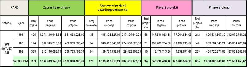 Prema podacima Agencije za plaćanja u poljoprivredi, ribarstvu i ruralnom razvoju u Istarskoj županiji zaprimljeno je 207 prijava za financiranje projekata sredstvima iz IPARD-a, od čega rekordnih 149 prijava za Mjeru 302 "Diversifikacija i razvoj ruralnih ekonomskih aktivnosti" (uglavnom ruralni turizam), zatim 40 prijava za Mjeru 301 "Poboljšanje i razvoj ruralne infrastrukture", 11 u Mjeri 103 "Ulaganja u preradu i trženje poljoprivrednih i ribljih proizvoda" te 7 u Mjeri 101 "Ulaganja u poljoprivredna gospodarstva". Također, 110 projektnih prijava još uvijek je u obradi. Dosad su u Istarskoj županiji ugovorena 44 projekta ukupne vrijednosti 148,5 milijuna kuna, od čega je isplaćeno 22,8 milijuna kuna potpore za osam projekata.