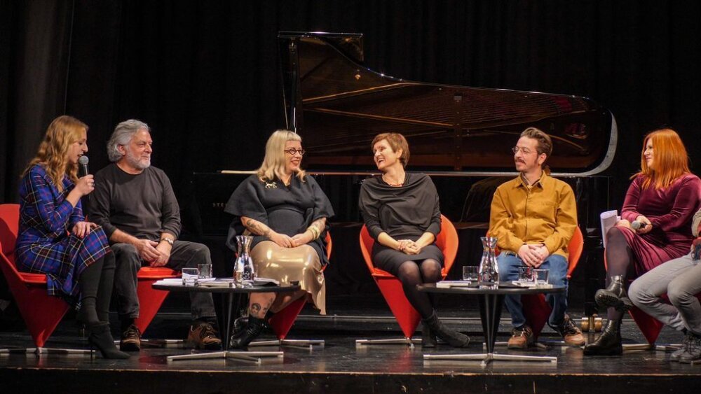Prije samog predstavljanja knjige posjetitelji su se mogli prepustiti atmosferi prožimanja različitih umjetničkih pristupa uz likovni postav Branka Gulina i Dee Curić u foajeu kazališta te glazbeni performans pijanistice Terezije Cukrov i multimedijalnog umjetnika Davora Sanvincentija. I dok su Gulinove dvije introspektivne slike velikog formata popratile apstraktnu autoportretnu skulpturu, Curić je cvijećem u ledenoj kocki koja se topi ostala vjerna tematizaciji ljepote prolaznosti. Glazbeni uvod Cukrov i Sanvincentija spojio je klavirsku izvedbu Messiaenovih preludija sa zvukovima prirode, što je stvorilo umirujuću, meditativnu atmosferu.