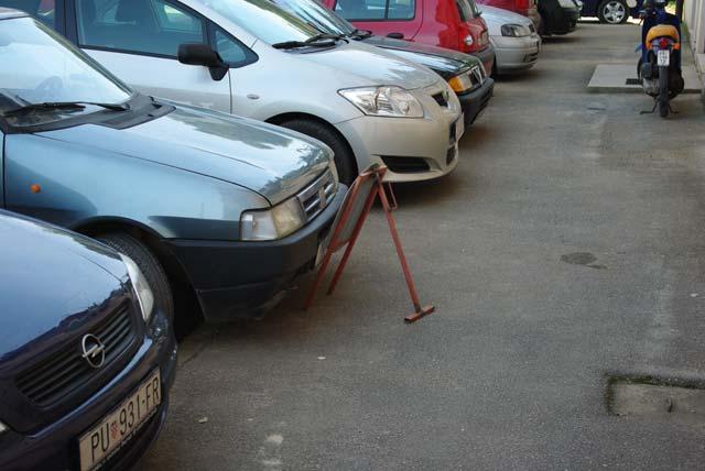 Stanari zgrada u toj ulici, naime, već dulje vrijeme uzurpiraju javni parkirališni prostor. Kad nekud odu vozilom, onda na "svoje" mjesto postave prometni znak, lanac, ili neku još maštovitiju prepreku. "Svoja" su parkirališna mjesta prigodno ofarbali, kako bi se boja linija razlikovala od bijele. Takva bi nam mjesta već na prvi pogled trebala reći:”Marš, to nije tvoje mjesto!”