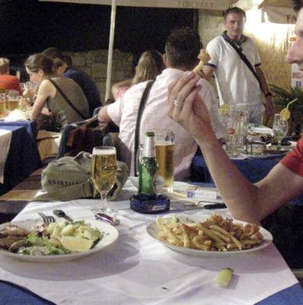 [slika6l]Posebnu priču u životu prosječnog turista ima hrana. Restorani su svetišta u koja ulaze horde izgladnjelih i pregorenih gostiju u potrazi za kakvom morskom ili kopnenom lešinom uz, po mogućnosti, prilog. Svako svetište ima svog svećenika, ali nema tog popa, fratra, hodže ili mujezina koji poznaje toliko jezika kao velečasni ugostitelj. Doduše, svi oni prodaju isto. Kalamari na žaru, prženi kalamari, punjeni kalamari, kalamari na salatu, svježi kalamari, domaći kalamari. Sjedamo na punu terasu jednog od ljetnih nazovimo restorana. Iako nije pristojno viriti u tuđi pjat, ne možemo ne primijetiti kalamare na susjednim stolovima. Naravno da naručujemo kalamare. Valja spomenuti da smo pri pokušaju pranja ruku u nečemu što podsjeća na zahod ostali uskraćeni za sapun. Na primjedbu da nemaju sapuna, konobarica je hladnokrvno uzvratila: »Znam«.