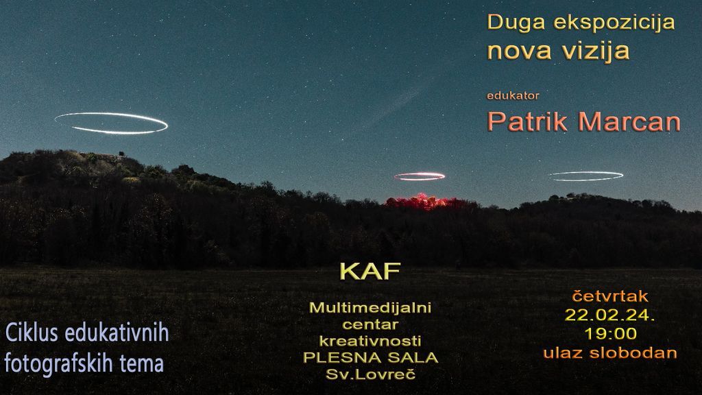Prvi gost-edukator je Patrik Marcan, mladi profesionalni fotograf iz okolice Poreča, a ulaz je slobodan.