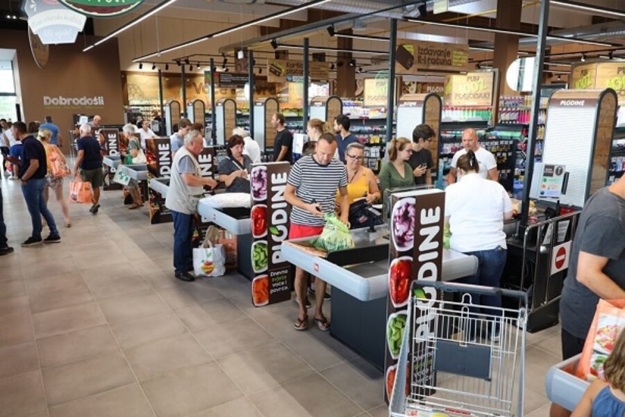 Prodavaonica se prostire na dvije tisuće četvornih metara. U njoj radi 50 ljudi, a očekuje se da će broj zaposlenih tijekom sezone i rasti. Uz supermarket je izgrađen i caffe bar te parkiralište sa 150 mjesta. Radit će svaki dan od 7 do 23 sata.