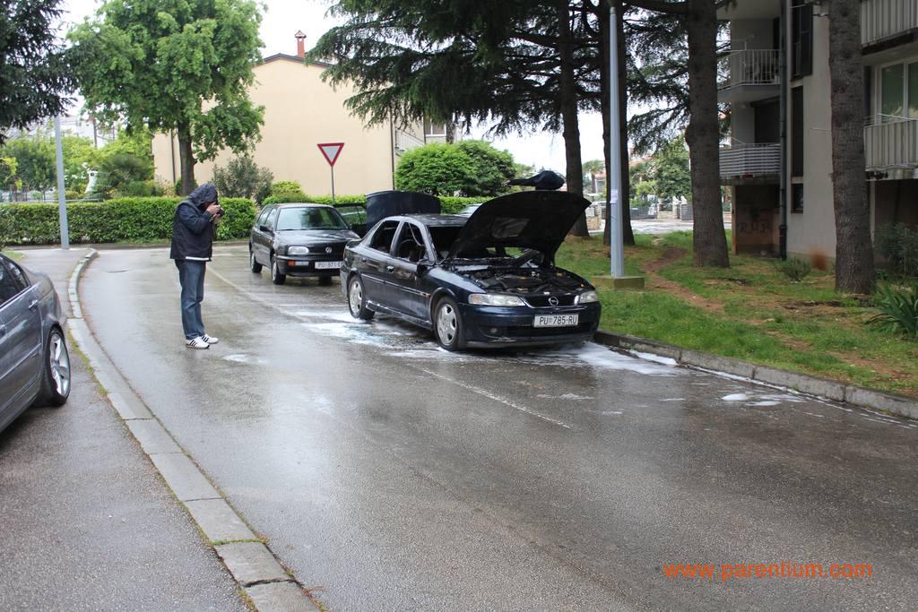Drugi je to požar na osobnom automobilu u Poreču u razmaku od tjedan dana. Podsjetimo, 24. travnja u ranim jutarnjim satima u Ulici Vitomira Širole Paje