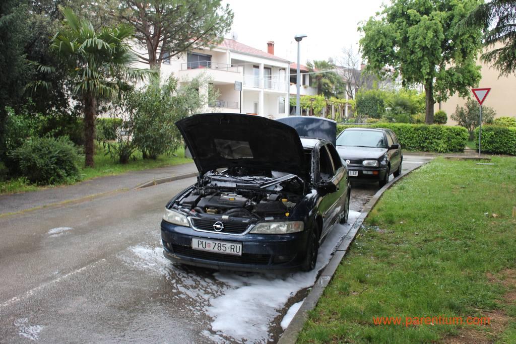 Požar na osobnom automobilu u Ulici Ane Guštin u Poreču (Fotografiju snimio čitatelj)