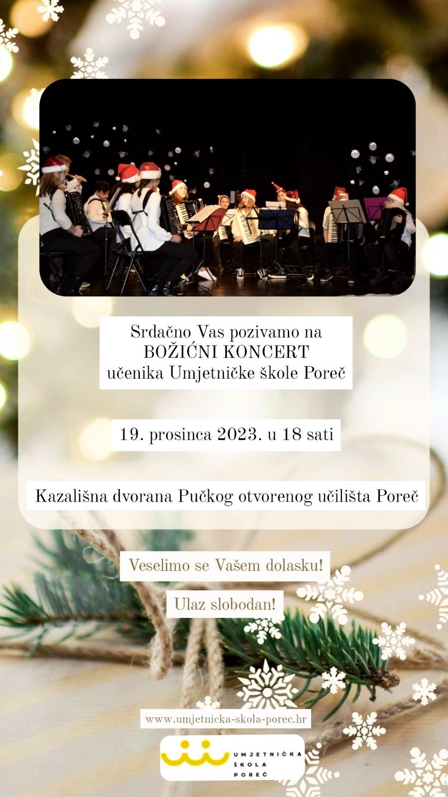 U utorak Božićni koncert Umjetničke škole Poreč