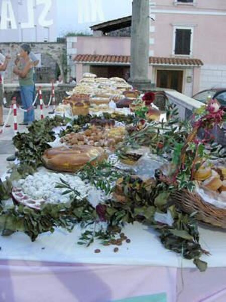 VIŽINADA - »Proglašavam degustaciju kolača otvorenom!«, rekao je voditelj programa Mauro Bernobić, a nekoliko stotina ljudi s tanjurićima u rukama naguralo se oko Batistelline šterne. Tako je završeno višesatno obilaženje i mjerkanje izložaka na najslađoj istarskoj fešti, dvanaestoj izložbi kolača u Vižinadi pod nazivom Slatka Istra. Ova se manifestacija tradicionalno priređuje u sklopu proslave blagdana Svete Marije Vele, a osamdesetak vrijednih domaćica iz Istre, Slovenije i Italije nije zakazalo ni ove godine - pripremile su preko 180 ukusnih i mirisnih istarskih kolača.