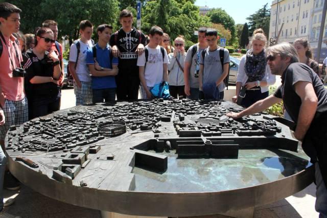 O njima, kao i o prapovijesti Istre izvijestili su nas naši izlagači. Zatim smo se uputili prema Puli uz odličnu atmosferu u autobusu. Arena - pulski Amfiteatar vratio nas je do sredine 1. st. pr.Kr. i očarao nas svojom očuvanošću i jedinstvenošću. Gradska galerija pružila nam je uvid u zbirku djela jednog od najznačajnijih hrvatskih slikara 20. stoljeća, Antuna Motike. Izložba njegovih radova, kao i djela brojnih drugih autora jako nas je dojmila. Zatim smo posjetili novouređeni muzejsko-galerijski prostor Sveta srca koji nas je uveo u arheološku povijest Istre uz multimedijalne sadržaje. Razgledali smo i kaštel na vrhu brežuljka i bili u Povijesnom i pomorskom muzeju Istre.