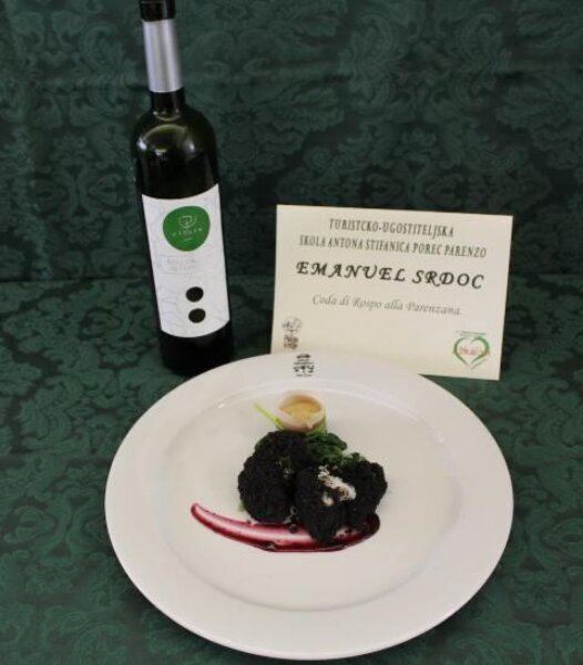 Emanuel Srdoč predstavljao je porečku školu na natjecanju sa temom "Le erbe del cuore", pripremivši rep grdobine mariniran u mrvicama kruha s crnilom od sipe.