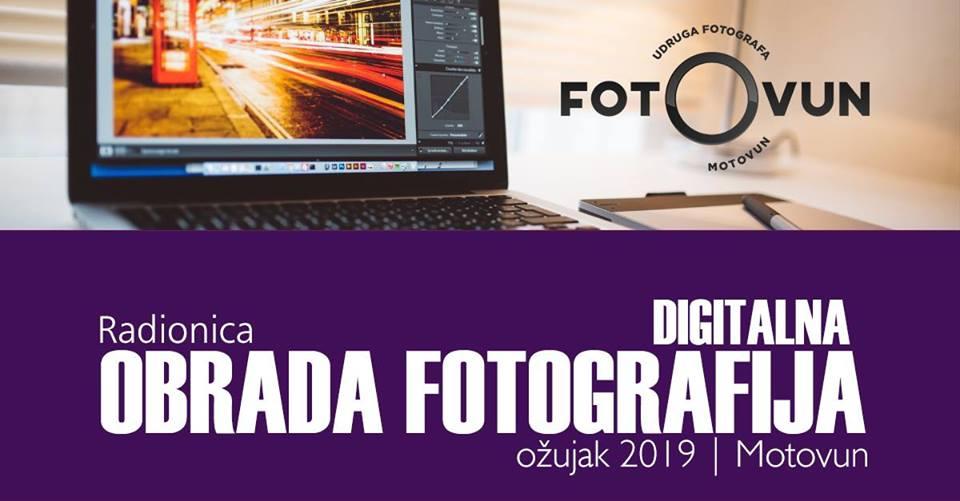 Udruga fotografa Fotovun iz Motovuna poziva sve zainteresirane građane i ljubitelje fotografije na praktičnu radionicu "Digitalna obrada fotografija", koja započinje 2. ožujka 2019. godine u 16 sati, u vijećnici Općine Motovun na adresi Trg Andrea Antico 1. Program radionice možete pronaći