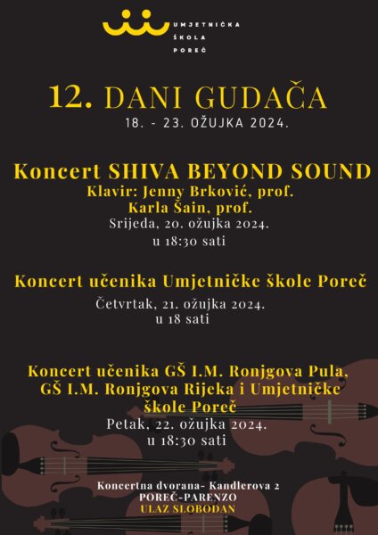 Umjetnička škola Poreč organizira 12. Dane gudača koji će biti održani od 18. do 23. ožujka.