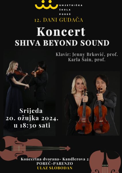 - 18:30 - KONCERT "Shiva Beyond Sound" s Sho Akamatsu i Ivanom Duvnjak Akamatsu, uz pratnju Jenny Brković i Karle Šain, prof.