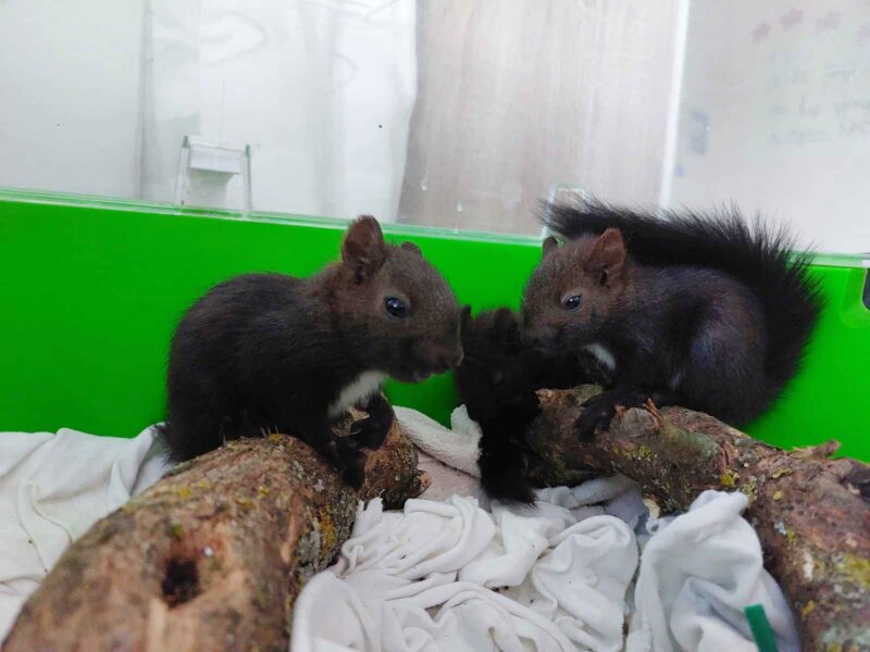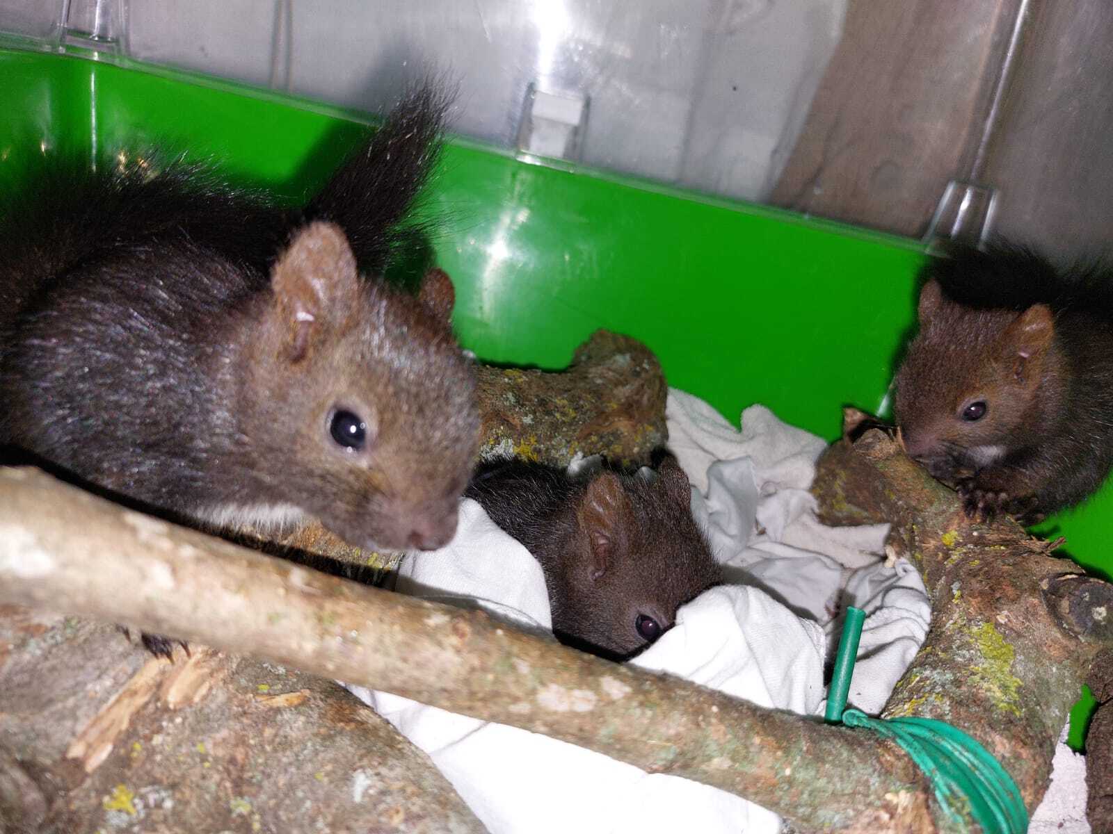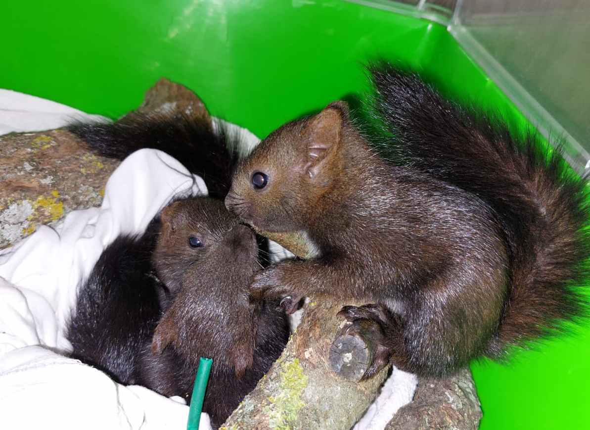 Znajući da moja supruga Conny i ja godinama brinemo o koloniji vjeverica kod jednog hotela u Poreču, Nataša je nazvala i nas. Našli smo se kod Doma, gdje se na opće iznenađenje i uzbuđenje pojavila i druga beba vjeverica. Nakon kraćeg “lova”, odnosno natjeravanja oko stabla, spremili smo ih u transporter i odvezli do Natašinog doma. Potom smo nazvali veterinara