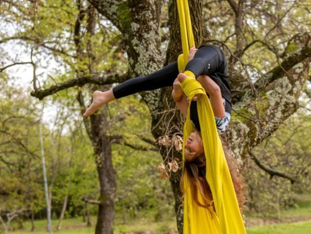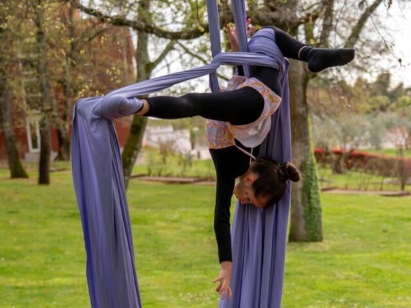 Travanj je obilježio i prvi ovogodišnji ARIJIN nastup na otvorenom, u Zelenoj Laguni uz hotel Albatros, čijem se vodstvu kao i turističkoj tvrtki Plava laguna zahvaljuju na susretljivosti i ustupljenom vanjskom prostoru. U sugestivnom ambijentu pod krošnjama stabala plesačice su izvele deset točaka inspiriranih cvijećem, predstavivši elemente penjanja visoko po šarenim svilenim trakama, preokreta naglavačke, rada na fleksibilnosti u zraku te spoj akrobatike i plesno-scenskog izraza koji ovu disciplinu čini sve prepoznatljvijom i atraktivnijom. Srdačnim aplauzima i navijanjem nagradili su ih članovi obitelji, prijatelji i gosti, a događaj je zabilježila fotografkinja Ana Stupar.