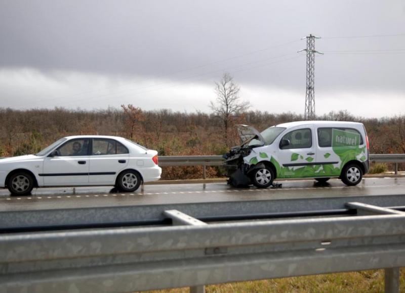 Prije odmorišta Bale (iz smjera Poreča) policija je obavljala očevid na nesreći u kojoj su oštećeni vozilo hitne medicinske pomoći i Peugeot pulskih oznaka. Kolnik je u bio mokar i "neugodan" kod većih brzina, a temperatura je na tom dijelu bila pet stupnjeva niža od one kod čvora Medaki. Cestari su vodili računa o prometu i pored znakova zastavicama usporavali promet. Kamion Bina Istre smo po povratku u Poreč sreli dok je preventivno posipao sol. Policija će nakon okončanja svih očevida izvijestiti o koliko se vozila radilo. (Napisao i snimio M. SARDELIN)
