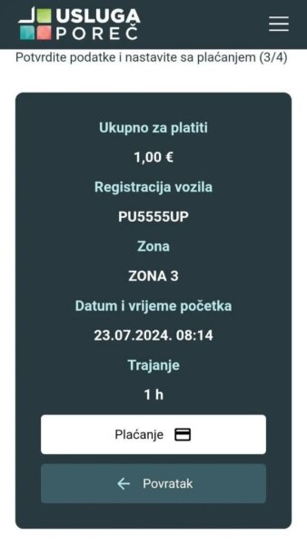 Kako bi korisnici imali što bolje iskustvo prilikom korištenja usluga parkiranja, omogućili su jednostavan proces plaćanja skeniranjem QR koda putem pametnog telefona. Nakon skeniranja, korisnike vode kratke i jasne upute za dovršetak transakcije. Zona parkiranja u kojoj se nalaze očitava se odmah, potrebno je unijeti broj registarske oznake ili dnevne parkirne karte, odabrati sate trajanja parkiranja te platiti parkirnu kartu kartičnim putem.