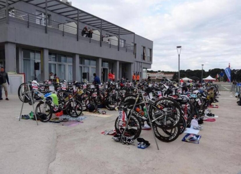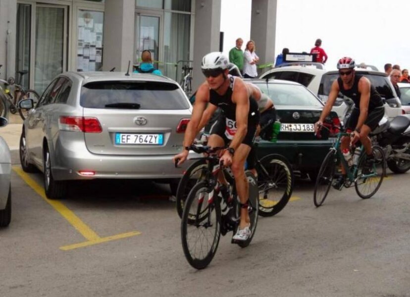 Već u osam sati startao je prvi dio utrke - plivanje u dužini od 1.900 metara ili dva kruga od platoa ispred hotela oko otočića Barbaran i natrag, nakon čega je uslijedilo brzo presvlačenje i prebacivanje na bicikle. Taj je dio uključivao je stazu dužine 85 kilometara, ili pet krugova od Poreča preko Žatike do Dračevca i natrag.