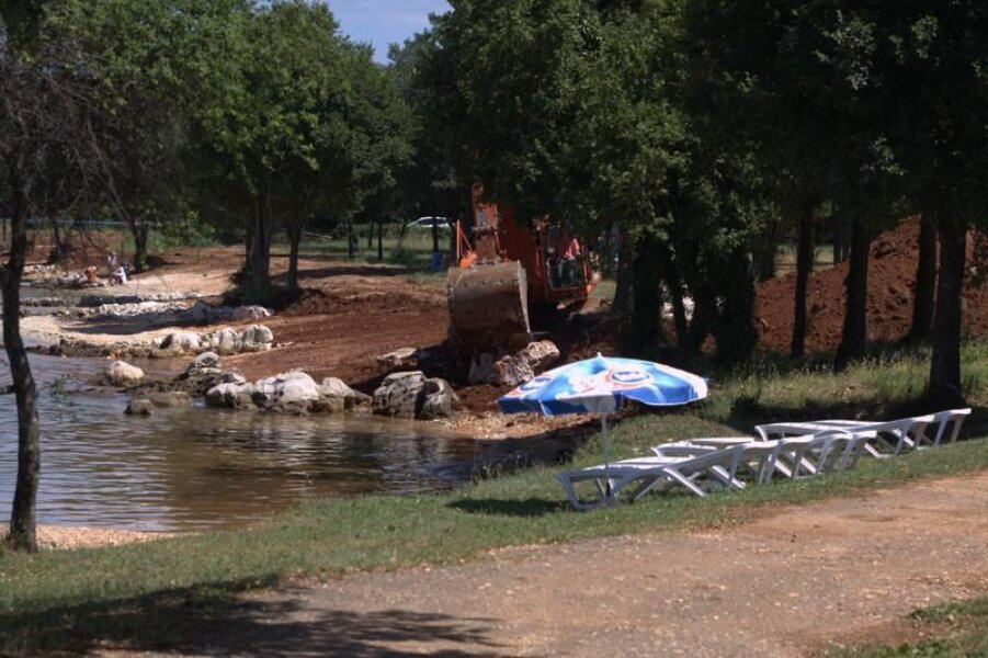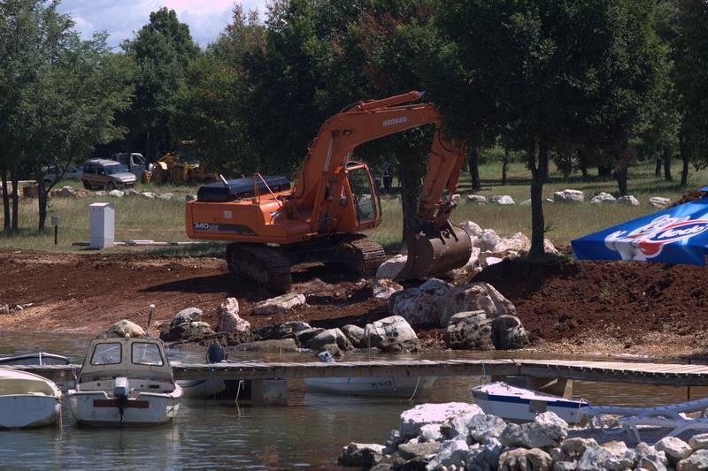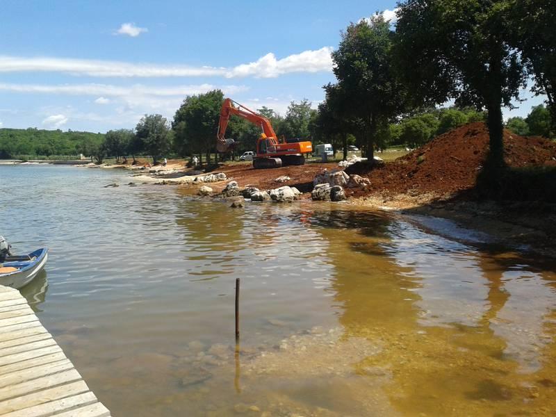 Jer, početak srpnja nikako nije vrijeme adekvatno blatnom suživotu kupača i teških strojeva koji već nekoliko dana kopaju, nasipaju zemlju i razvrstavaju veliko kamenje duž dvjestotinjak metara obale. Voda je duž cijele uvale zamućena i blatnjava, što doista nema nikakvog smisla.