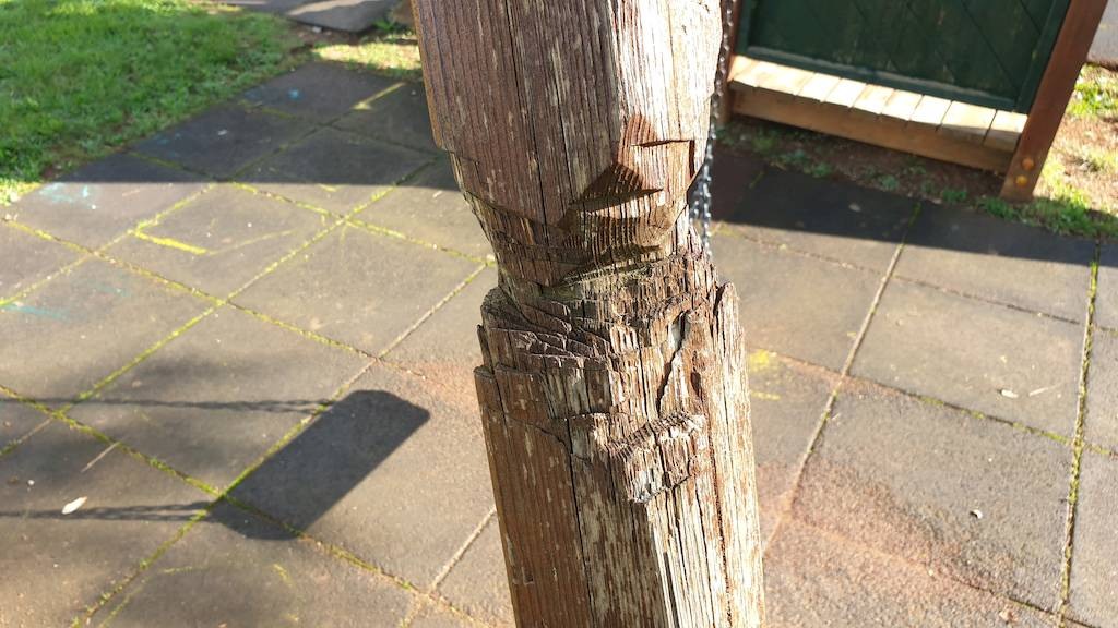 Na dječjem igralištu na križanju Rovinjske i Vrsarske ovih je dana osvanuo zabrinjavajuć prizor. Netko s viškom slobodnog vremena i energije je, u maniri drvosječe, značajno oštetio drveni nosač dječje ljuljačke te je pitanje dana kad će se ljuljačka srušiti.