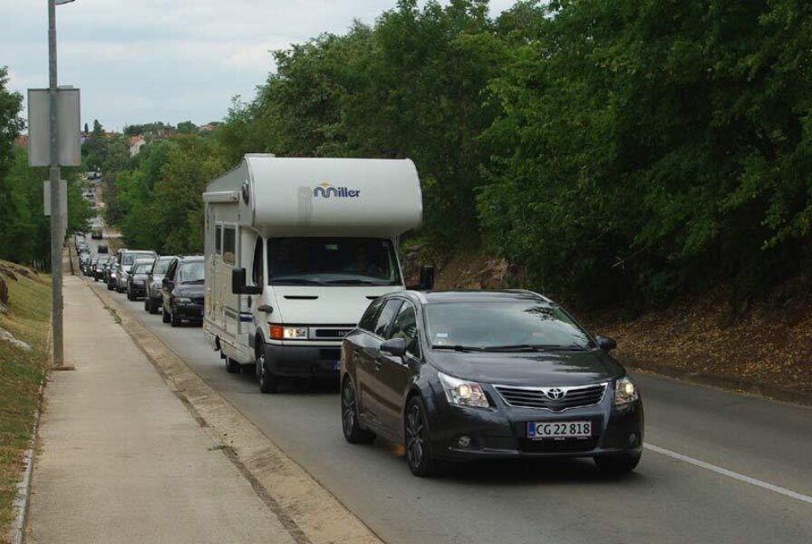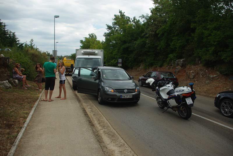 Prvog oblačnog dana u ovoj turističkoj sezoni krenula je i prva prava navala motoriziranih turista na gradsko središte, zbog čega je prometovanje županijskom cestom 5002 kroz Poreč postalo vrlo usporeno. Još je gore bilo zbog prometne nezgode kod Finide u kojoj su sudjelovala čak tri vozila.