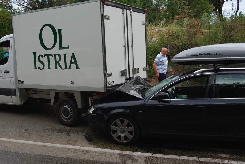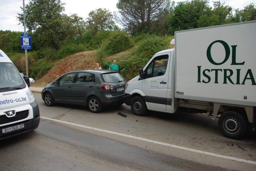 Ne primijetivši da se pred njim nalazi zaustavljena kolona vozila, dekoncentrirani vozač Audija nizozemskih oznaka se, krećući se iz smjera Novigrada prema Poreču, odostraga zabio u kamion koji je nakon toga udario u Volkswagen ispred sebe.