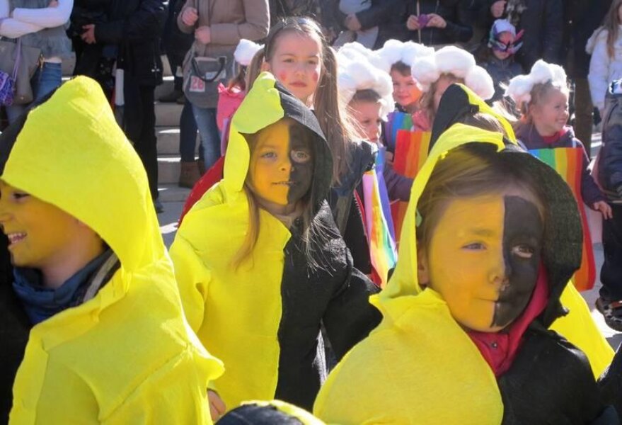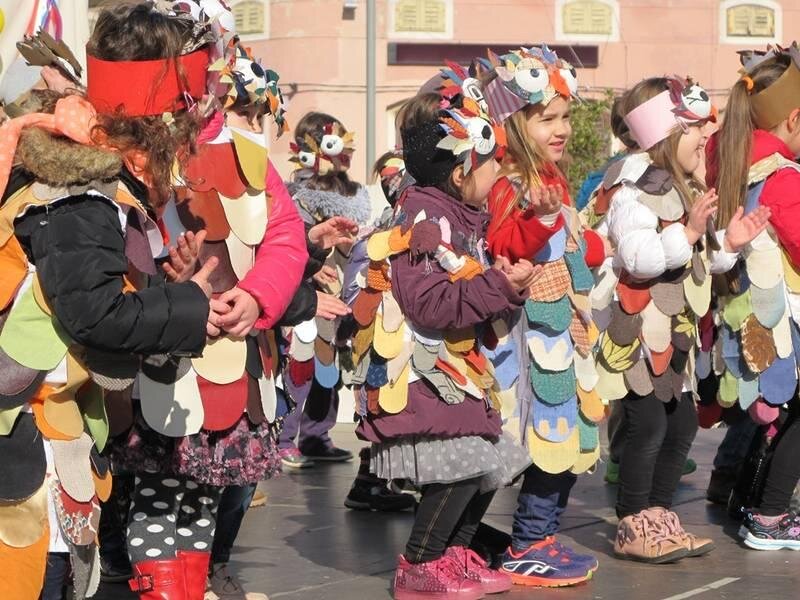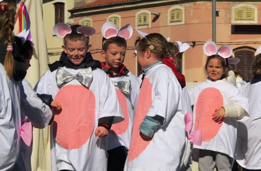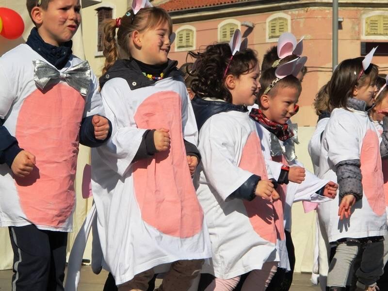 Trg slobode bio je u utorak dopodne kao pčelinjak – zujalo je stotine malih maškarica iz 11 različitih grupa. Pjevale su, plesale, pokazivale kakve su maske napravile u posljednjim tjednima i kakve koreografije uvježbale za pozornicu. Gotovo dvosatna priredba kroz koju su vodile klaunice, mirisala je na krafne, odzvanjala veselim dječjim glasovima pod budnim okom odgajateljica i odgajatelja, nastavnica i - roditelja iz publike.