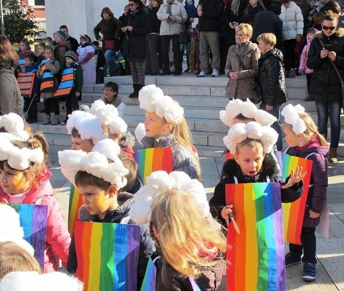 Boja je bila misao vodilja i skupini maškarica iz dječjeg vrtića Crvenkapica – Mirela i Valentin sa 20 djece poručili su: „Drugima daj što bi nazad htio, pokloni sreću da bi sretan bio. Voli sebe, voli druge, oboji svijet bojama duge“ i kistovima prosuli dugine boje po svima na Trgu slobode.