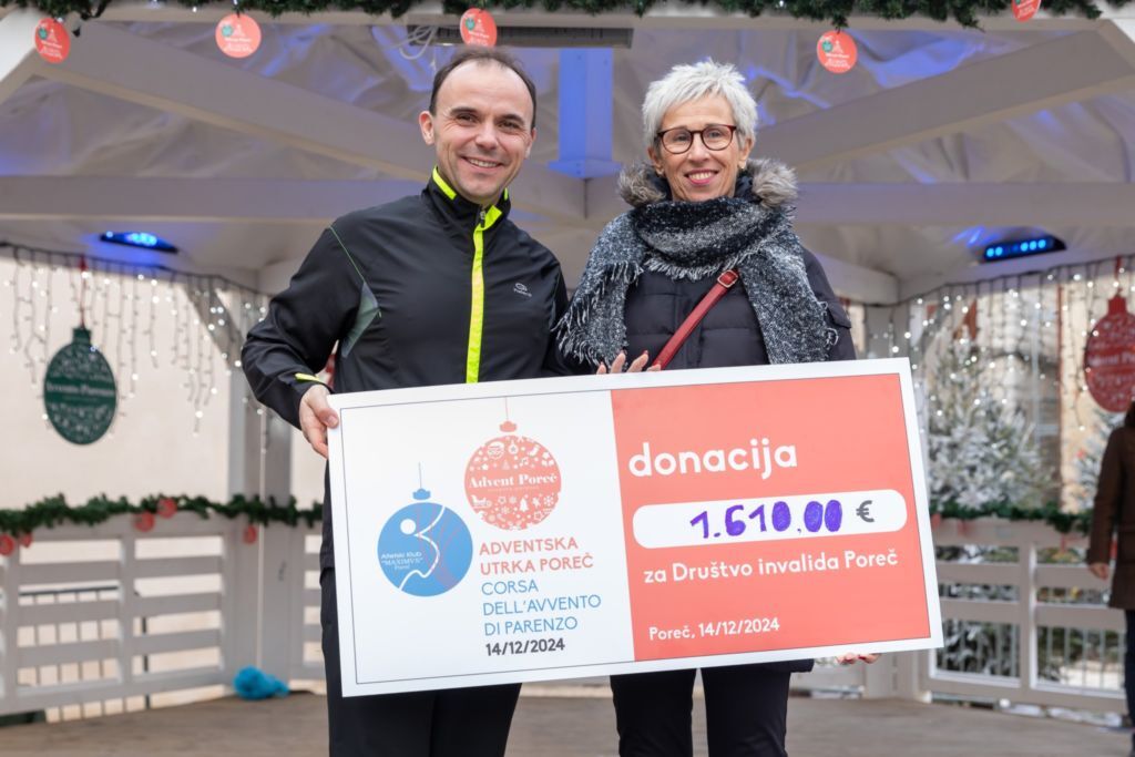 Druženje se nastavilo na Adventu, gdje je članovima Društva invalida Poreč uručena vrijedna donacija. Gradonačelnik Loris Peršurić, ujedno i sudionik utrke, zahvalio je svima na odazivu te istaknuo kako su Porečani i brojni gosti još jednom dokazali svoju humanost i veliko srce.
