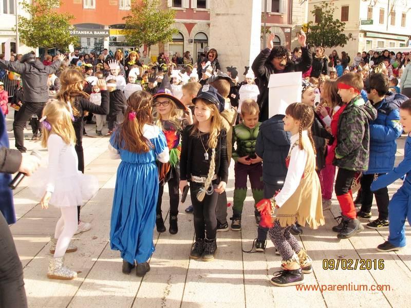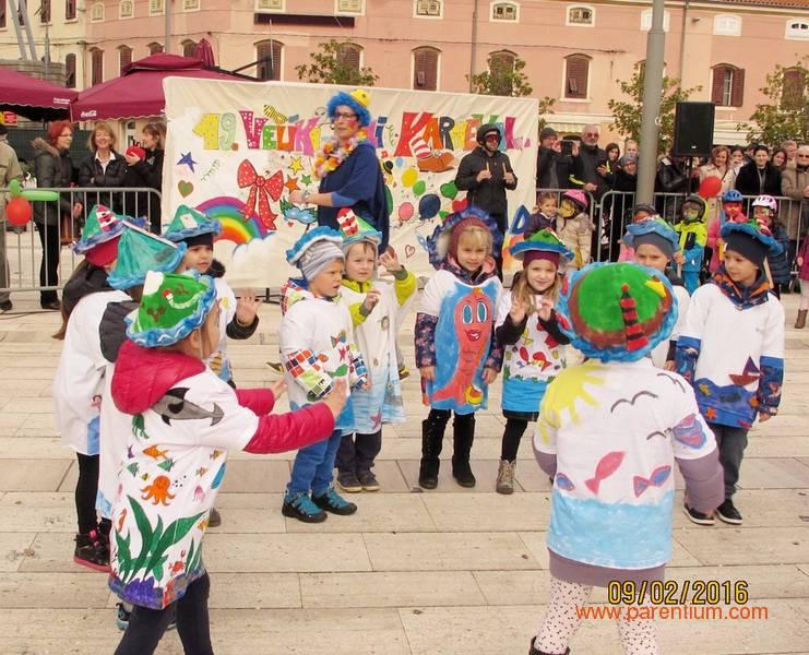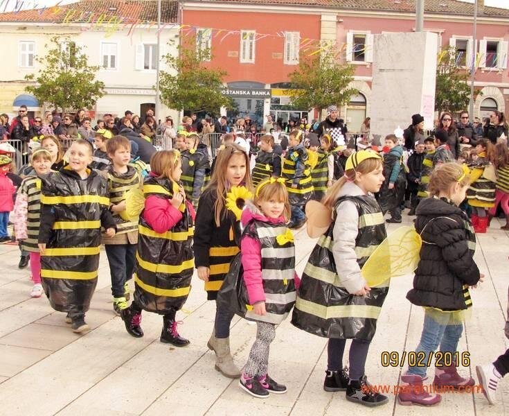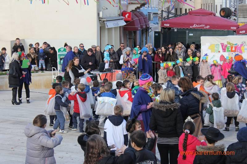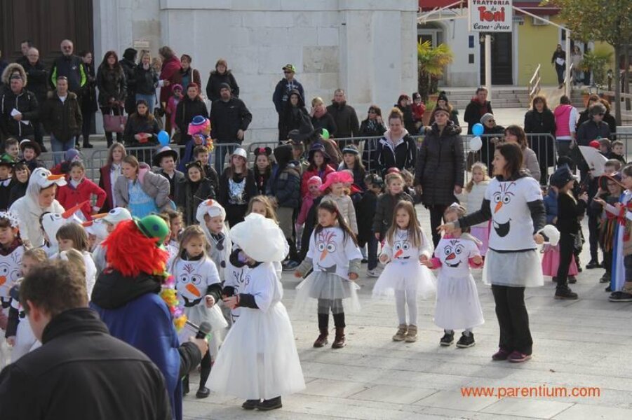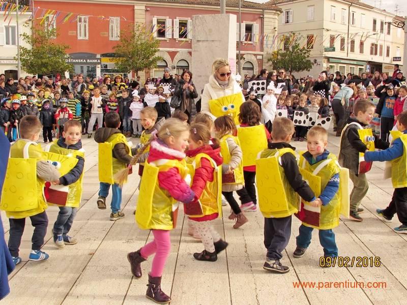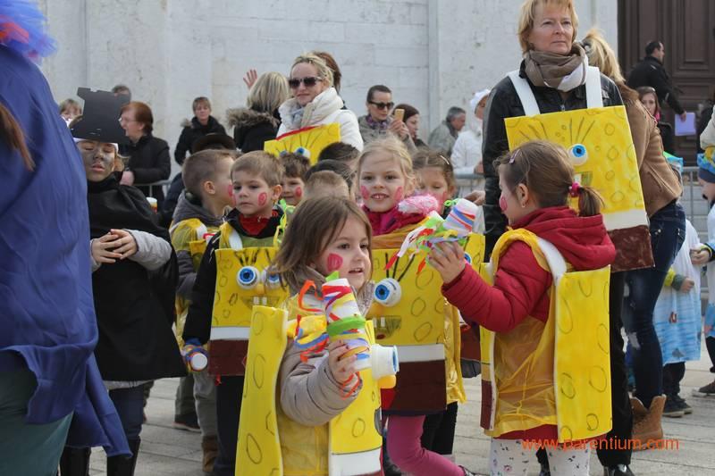 A grupne maske bile su iznimno maštovite – od vrećica čaja, preko snjegovića i snješkica, razglednica iz Poreča, plavetnih valova, zečića, zvjezdica, otoka, Spužve Boba, veselih maškara, limača, pčelica, klauna, kockića, skijaša, šahovskih figura Čarobne šume, Minionsa, zvrkića, pa sve do malih kuhara. Sunce je izmamilo velike i male na Trg slobode, jer Veliki mali karneval ispuni Trg i Grad prštećom dječjom energijom.