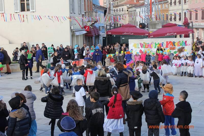Devetnaestim velikim malim karnevalom prodefiliralo je 19 maškaranih skupina porečkih vrtića i Osnovne škole Poreč – ukupno 466 djece i 43 odrasle osobe, a uz svaku su grupnu masku sudionici pripremili i plesnu koreografiju uz odabranu glazbu.