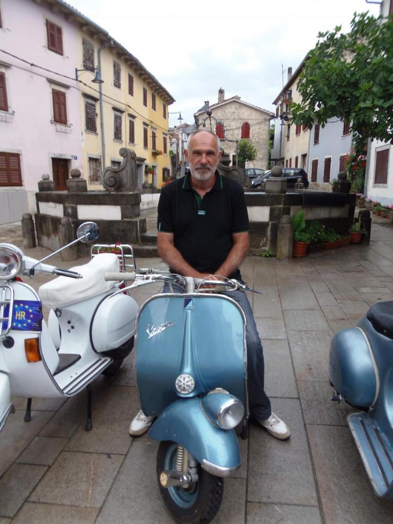 Stipančić se dovezao na najstarijoj vespi susreta iz 1951. godine, modelu V30T. Rekao nam je da je prošli tjedan sudjelovao na svjetskom skupu vespista u Saint Tropezu u Francuskoj te da kod kuće ima sedam vespi što je skromno jer ih neki od članova Vespa kluba Istra Pula imaju i dvadesetak.