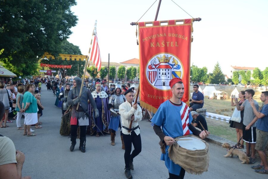Tradicionalnim svečanim mimohodom i prijemom kod gospode Grimani u Kaštelu, večeras je otvoren trodnevni Srednjovjekovni festival, koji se već sedmi put održava u Svetvinčentu na tri atraktivne lokacije - u Kaštelu Morosini-Grimani, Žlinji (livadi iza Kaštela) i na Placi.